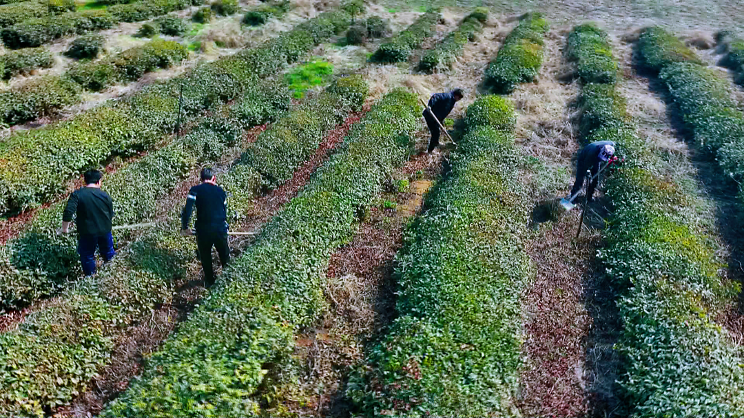 “開春以來,雨水偏少,對(duì)茶葉采摘有一定的影響。今天我們來到茶園,指導(dǎo)農(nóng)戶淺根松土、早施催芽肥、開溝防漬,幫助他們做好茶園管理?!卑咨虫?zhèn)農(nóng)技服務(wù)中心負(fù)責(zé)人張紅兵說。