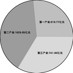 全省生產(chǎn)總值首次突破5000億元大關,達到5401.71億元,按可比價格計算,比上年增長9.4%,增幅高于全國平均水平0.3個百分點。其中,第一產(chǎn)業(yè)完成增加值798.35億元,增長5.8%;第二產(chǎn)業(yè)增加值2580.58億元,增長9.7%。三次產(chǎn)業(yè)結構由2002年的14.2∶49.2∶36.6調整為14.8∶47.8∶37.4,第三產(chǎn)業(yè)比重進一步提高。