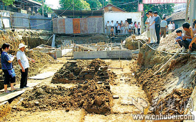記者聞訊趕到現場看到,工地上圍觀群眾較多,有的還躍躍欲試,想挖些東西帶走。記者隨即向相關部門通報情況。不久,多名民警、文物工作者相繼趕到現場,進行保護。