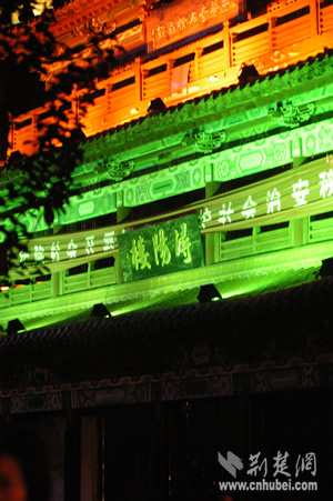 我們沿著橋邊的匝道走上大橋。位于贛江的新八一大橋于97年9月29日建成通車,是江西的第一座斜拉式大橋。從橋上朝橋下看去,記者發(fā)現(xiàn)引橋周圍微縮建造了江西歷史人文景觀中的潯陽樓(九江)、郁孤臺(贛州)、龍珠閣(景德鎮(zhèn))、牡丹亭。 這些縮微建筑造型精致,耐人尋味。