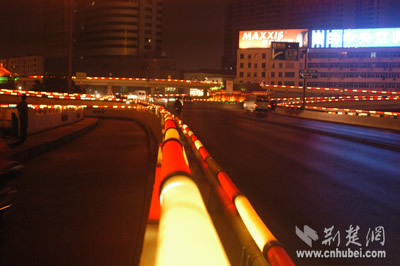 傍晚時分,橋上橋下華燈齊放。三三兩兩的人群從四面八方涌向這片鬧市中的寧靜地。不到21時,引橋四周的長椅就已被捷足先登的人們“占領(lǐng)”。