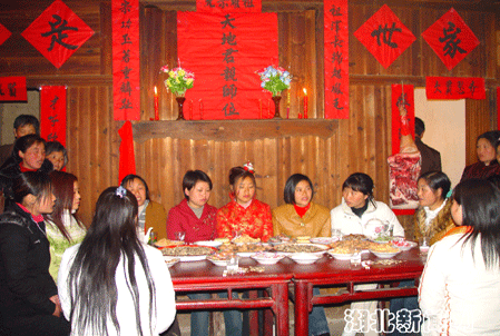 今年1月,該縣文化部門在采花鄉(xiāng)找到完整的“唐祭儀式”藝人班子。十幾名藝人雖然在解放后都沒有再進(jìn)行過“告祖”儀式,但整個程序記得十分清楚。經(jīng)協(xié)商策劃,決定利用男女雙方實(shí)景把“告祖”及土家婚俗完整真實(shí)拍攝下來。3月28日,市縣兩級文化工作專班和十六名民間藝人開赴傅家堰火山村,日夜奮戰(zhàn)4天,終于把“告祖”的整個程序以寫實(shí)手法拍攝下來。同時,還拍攝到了土家婚俗中背新娘、吃雞蛋茶、抬花轎、陪十弟兄、陪十姊妹的珍貴鏡頭,把土家婚俗完整記錄了下來,為項目的申報工作進(jìn)一步夯實(shí)了基礎(chǔ)。