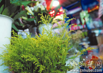 7月18日,讀者來電反映:在漢口球場(chǎng)路武漢花鳥市場(chǎng)內(nèi),有人售賣像“滿天星”一樣的花草,疑似有害生物“加拿大一枝黃花”。記者隨即趕到該市場(chǎng),只見臨街10余家門面里,都擺放有這種花(如圖)。