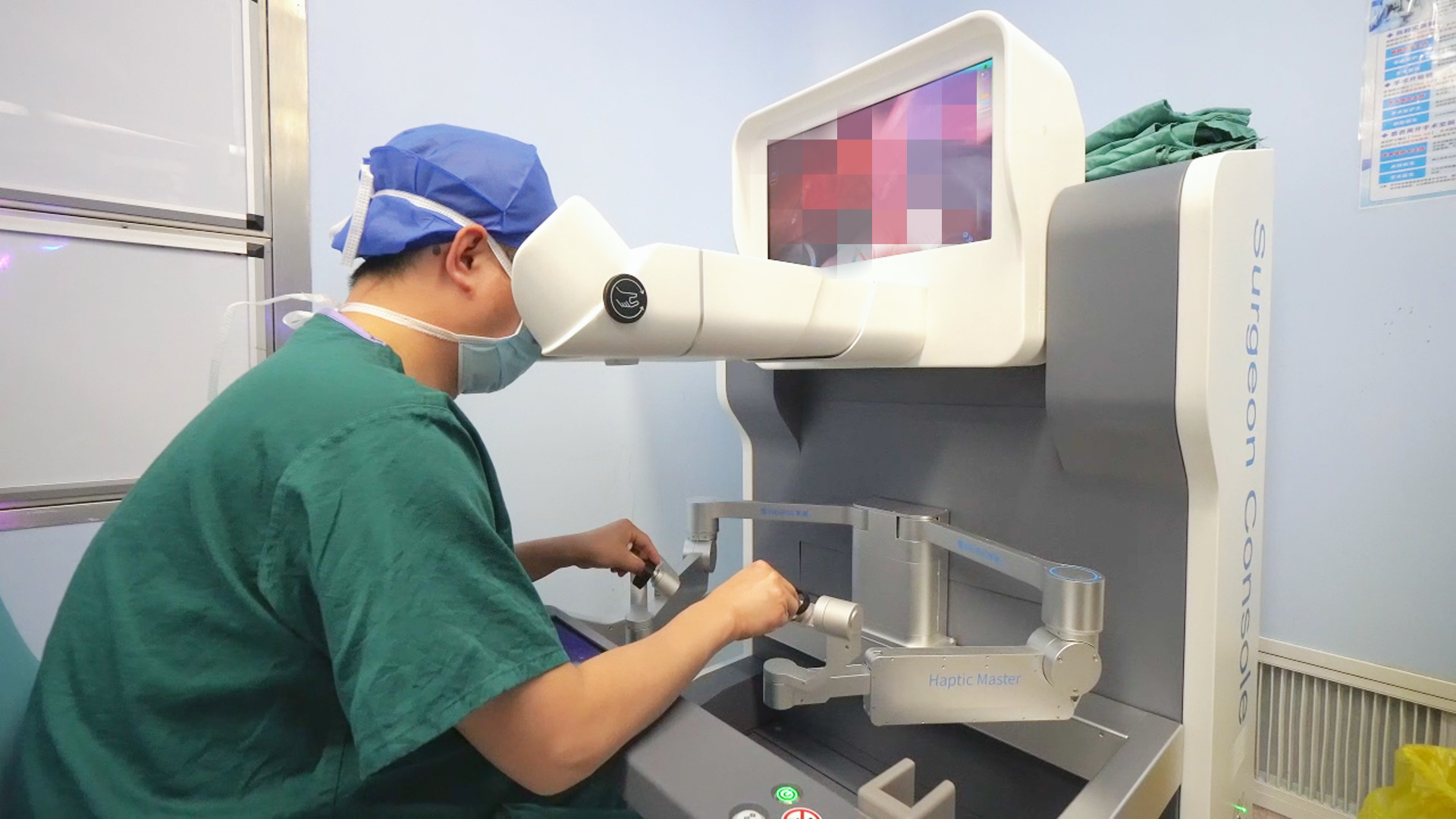 在手術(shù)進程中,楊坤精準地操控著機器人的機械臂,沿著囊腫邊緣僅2mm的距離進行精細分離操作,每一個動作都極為流暢且精準,整個過程層次分明,幾乎沒有任何出血現(xiàn)象。