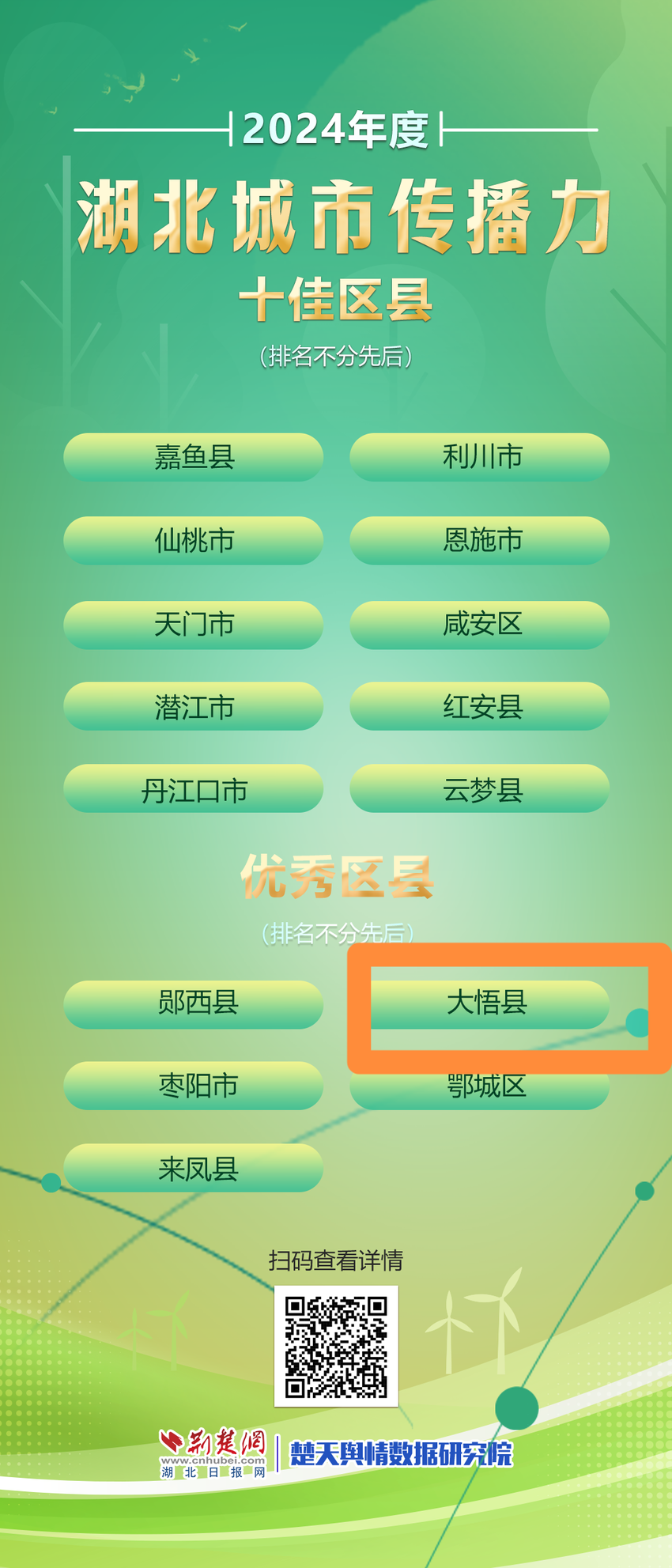 荊楚網(wǎng)(湖北日報網(wǎng))訊(通訊員 易榮波、李怡)2月27日,荊楚網(wǎng)(湖北日報網(wǎng))、楚天輿情數(shù)據(jù)研究院發(fā)布了“2024年度湖北城市傳播力十佳區(qū)縣”榜單。其中,嘉魚縣、仙桃市、天門市、潛江市、丹江口市、利川市、恩施市、咸安區(qū)、紅安縣、云夢縣等10個縣市區(qū)榮膺傳播力十佳區(qū)縣;大悟縣、鄖西縣、棗陽市、來鳳縣、鄂城區(qū)5個縣市區(qū)獲得傳播力優(yōu)秀區(qū)縣。這些上榜區(qū)縣不斷挖掘城市核心價值和獨特魅力,通過活動策劃,創(chuàng)新宣傳手段與方式,讓城鄉(xiāng)蝶變的宣傳報道有故事、有溫度,更有煙火氣,城市形象傳播出圈出彩,唱響區(qū)縣高質(zhì)量發(fā)展主旋律。