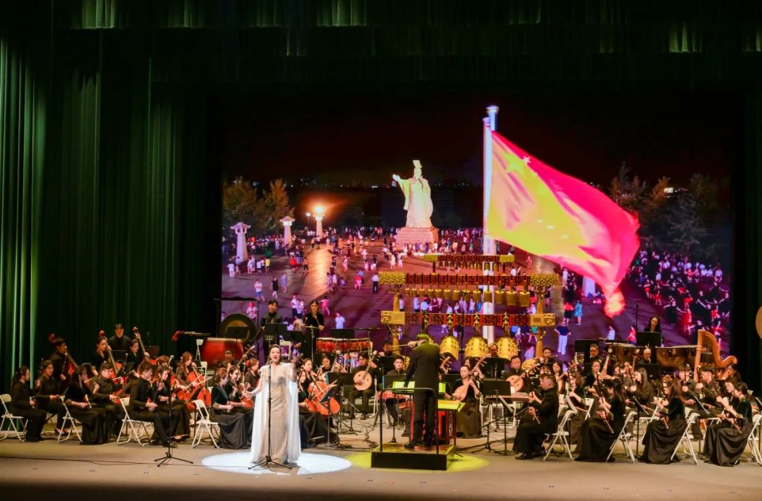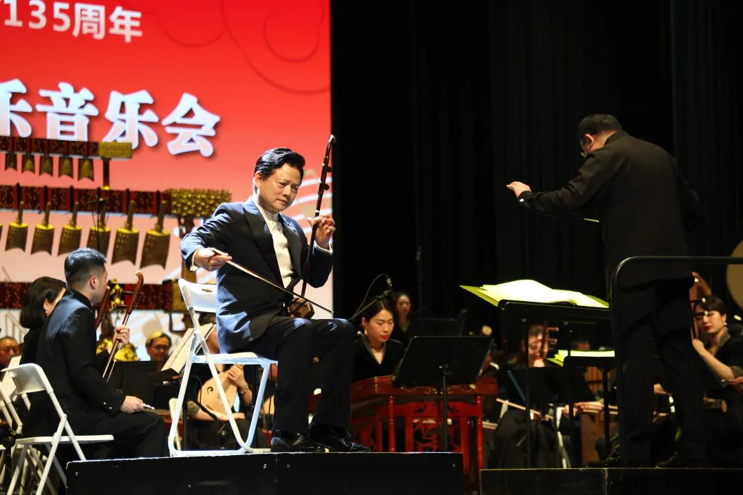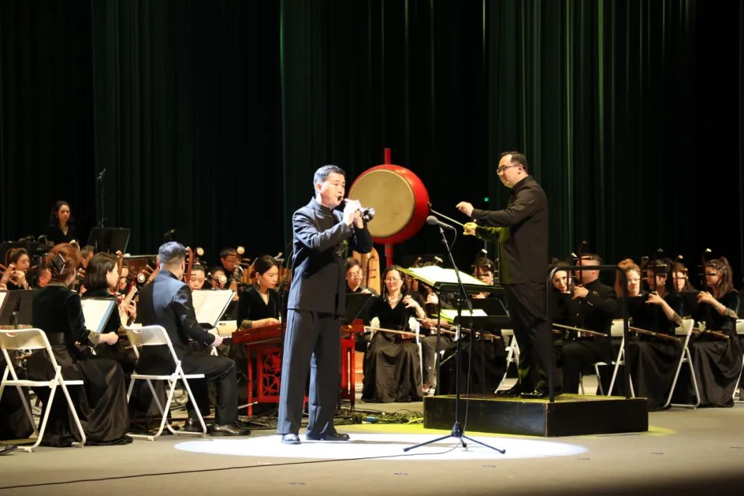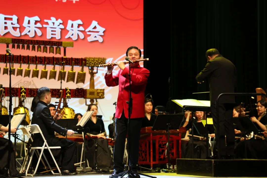 整場(chǎng)演出巧妙融合傳統(tǒng)民樂精粹與時(shí)代發(fā)展脈動(dòng),《春江花月夜》流淌千年文脈,《絲綢之路》激蕩開放胸襟,《百鳥朝鳳》以嗩吶絕技展現(xiàn)非遺魅力。