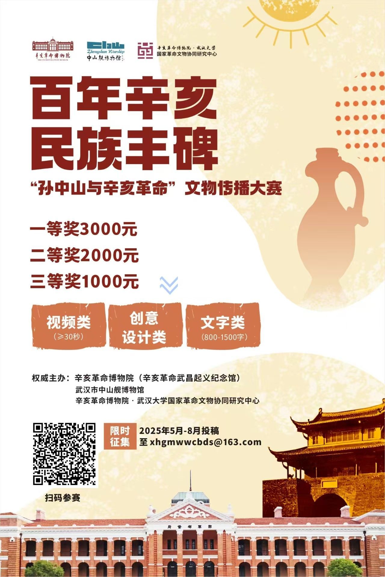 投稿請發(fā)送至指定郵箱 xhgmwwcbds@163.com,郵件標題需按【辛亥革命文物傳播作品征集】類別 + 姓名(集體名)+ 參賽作品標題規(guī)范填寫,內(nèi)容備注聯(lián)系方式。