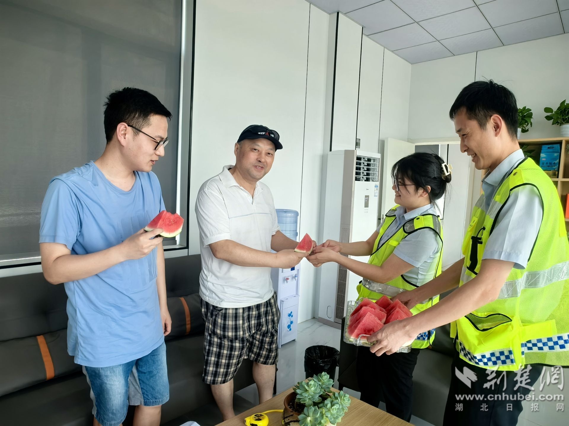 “師傅,快吃塊冰鎮(zhèn)西瓜降降溫!”8月4日14時(shí)12分,大悟北收費(fèi)站旁的愛(ài)心小屋里,志愿者將清涼遞到風(fēng)塵仆仆的司機(jī)手中。這處防暑服務(wù)點(diǎn)雖小,卻是高溫旅途的庇護(hù)所:冰爽西瓜、清涼飲水、片刻陰涼,幫助司乘補(bǔ)充水分、消散暑氣。來(lái)自河南的王師傅感慨:“高溫天開(kāi)車易脫水犯困,能在這歇腳降溫,太及時(shí)了!”入夏以來(lái),該點(diǎn)已為超百名經(jīng)受高溫“烤”驗(yàn)的司乘提供防暑關(guān)懷,成為高速路上的“清涼驛站”。