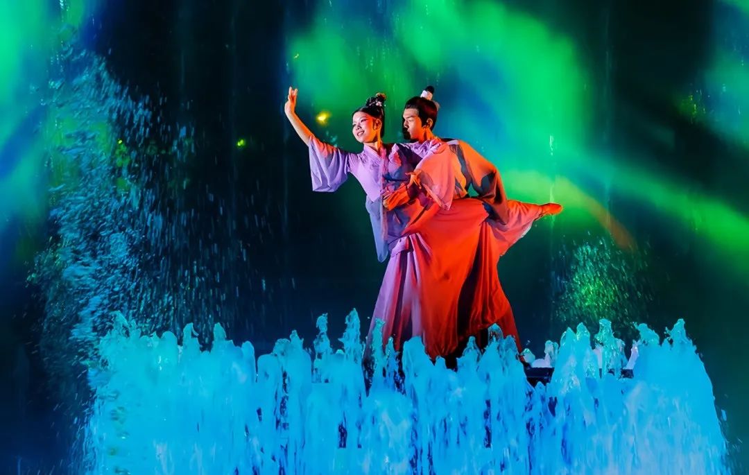“在船上看戲,兩岸燈光隨劇情變幻,仿佛穿越到千年孝文化傳說(shuō)中?!蔽錆h游客李女士在欣賞完《鵲橋》《織絹》等經(jīng)典橋段后連連贊嘆。
