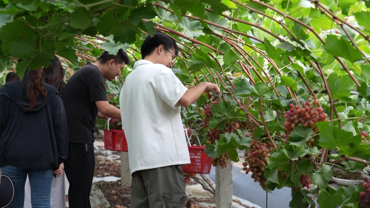 除了采摘體驗(yàn),園區(qū)完善的配套設(shè)施也讓游客駐足?!爸苣Ъ胰伺笥褋磉@兒,能采摘、能住宿,還能就近吃飯,是個(gè)放松的好地方?!?游客吳子龍的話,道出了不少人的心聲。