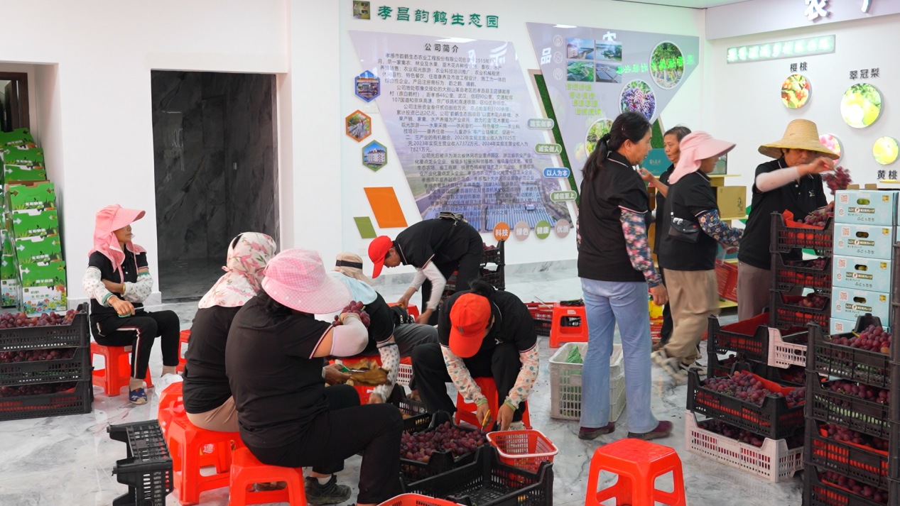 作為華中地區(qū)單體規(guī)模最大的高端葡萄種植園,韻鶴生態(tài)園占地3100畝,如今已成功入選國家3A級(jí)景區(qū)。除了葡萄,園區(qū)全年還能采摘草莓、櫻桃、桑葚等水果,配套的餐飲、住宿、游樂園設(shè)施一應(yīng)俱全,每年接待游客超30萬人次。