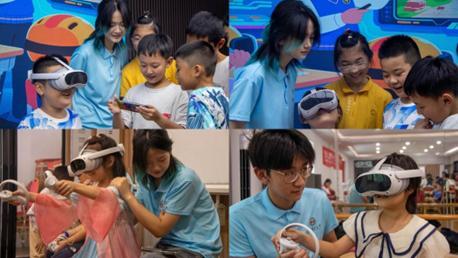 實踐隊引入VR技術(shù)開展體育活動,孩子們戴上VR眼鏡后,可在虛擬場景中體驗籃球、羽毛球等運動,電子軌跡與虛擬星空讓體育活動突破場地限制。隊員們在旁守護(hù),確保孩子們在虛實結(jié)合的環(huán)境中安全奔跑、跳躍,額角的汗珠與興奮的呼喊,讓孩子們在趣味中感受運動的魅力,實現(xiàn)運動形式創(chuàng)新化、虛擬化、趣味化。