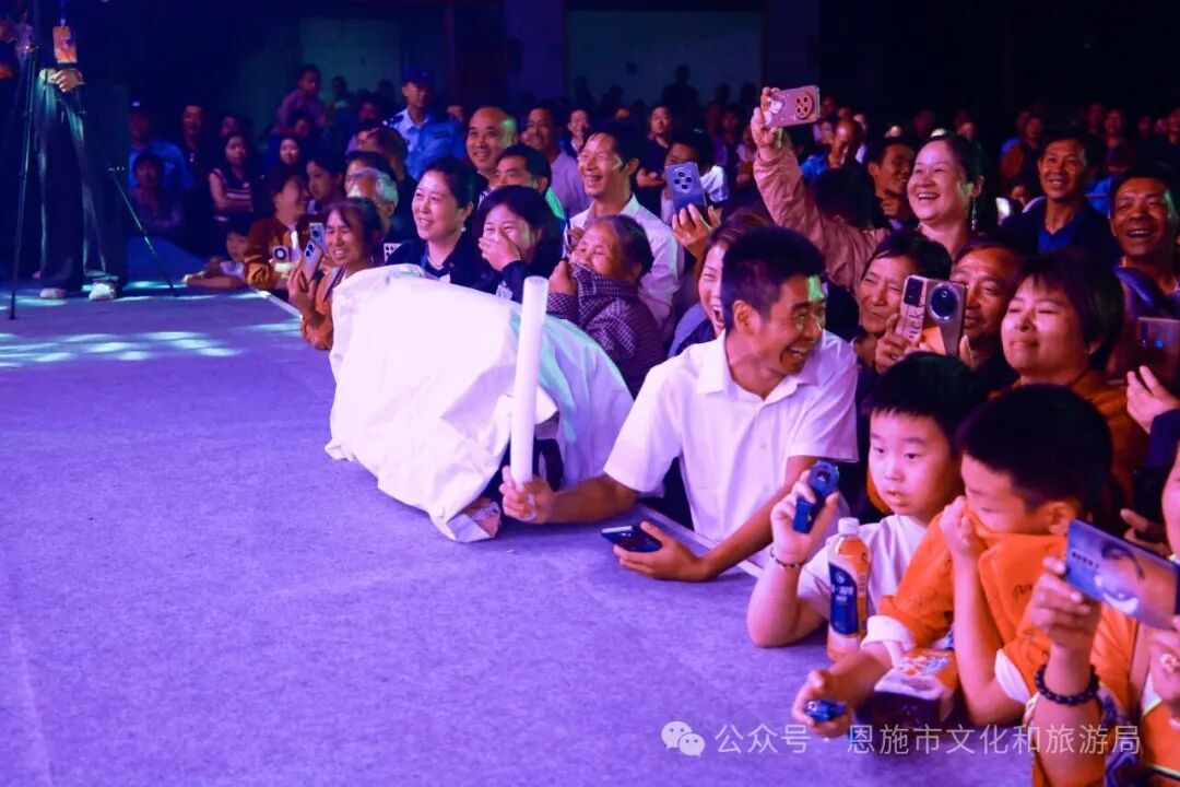 比賽當(dāng)晚,石窯村文化廣場(chǎng)燈火輝煌,人潮涌動(dòng)。6名選手身著絢麗多彩民族服飾和帥氣靚麗的服裝,以傳統(tǒng)與時(shí)尚交融的造型亮相,他們精神飽滿,自信十足。從贊美家鄉(xiāng)山水的《清江畫廊土家妹》,到京腔京味的《門前情思大碗茶》,再到原汁原味的民族歌曲《找莫米》,一首首經(jīng)典曲目輪番上演,引發(fā)臺(tái)下掌聲、歡呼聲、喝彩聲此起彼伏,不絕于耳。