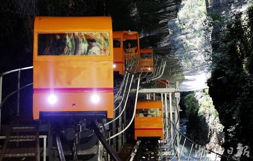 在這里,將開啟一場2400米的云端地心之旅——車窗化作天然IMAX銀幕,飛瀑在腳下碎成鉆石雨,巖層紋路里凝固著遠古海浪,霧氣中突然探頭的彩虹帶來驚喜;200米落差間,軌道車以恰到好處的速度穿梭,每個轉(zhuǎn)彎都成為與石壁的驚鴻一吻,13分鐘航程里腎上腺素與視覺震撼同步飆升。