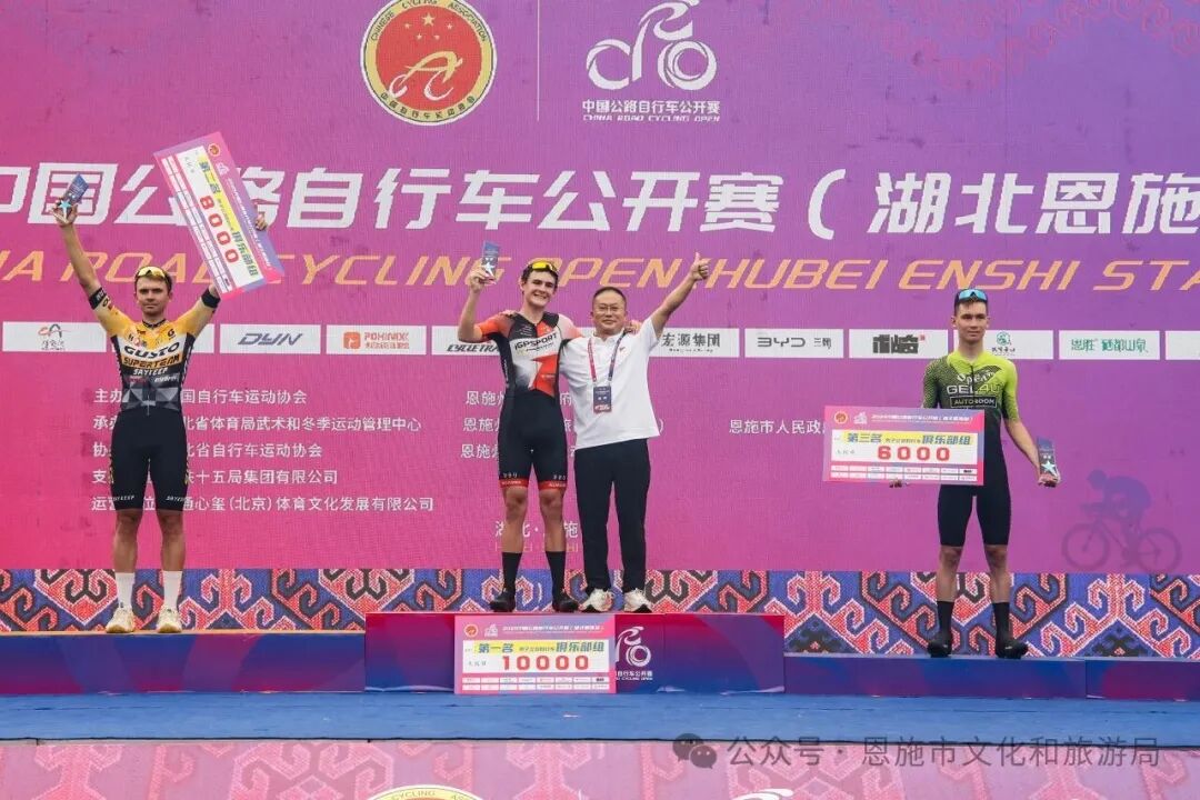 2025年中國(guó)公路自行車(chē)賽(湖北恩施站)第一賽段所有比賽圓滿(mǎn)結(jié)束,經(jīng)過(guò)激烈角逐,跡馳-瑞豹車(chē)隊(duì)獲得俱樂(lè)部組團(tuán)體積分第一名,來(lái)自跡馳-瑞豹車(chē)隊(duì)的VLADISLAY SOZINOV最終憑借強(qiáng)勁的沖刺能力摘得桂冠,被授予白衫,來(lái)自GUSTO SUPERTEAM車(chē)隊(duì)的VITALII和重慶南岸風(fēng)騎捷安特車(chē)隊(duì)的BLOKHIN IVAN 分獲二、三名;男子精英組、大學(xué)生組、青少年組及女子精英組冠軍分別由來(lái)自恒宇單車(chē)的馮浩然、任中昊、DYC-晟亦青訓(xùn)選手方宇軒和Bigrock大石魅騎廠(chǎng)隊(duì)張婷婷獲得。