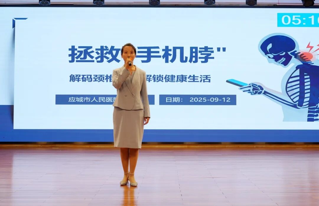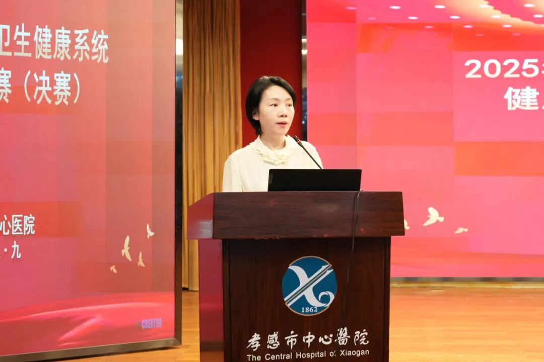 孝感市中心醫(yī)院副院長張海燕在健康科普大賽上進(jìn)行致辭,經(jīng)過前期預(yù)賽,18位來自各醫(yī)聯(lián)體成員單位的參賽代表同臺競技,圍繞慢性病管理、急救常識、婦幼健康、老年健康等群眾關(guān)切的健康話題開展了科普宣講。