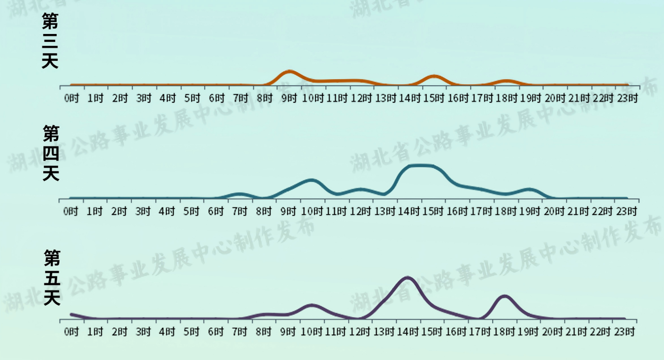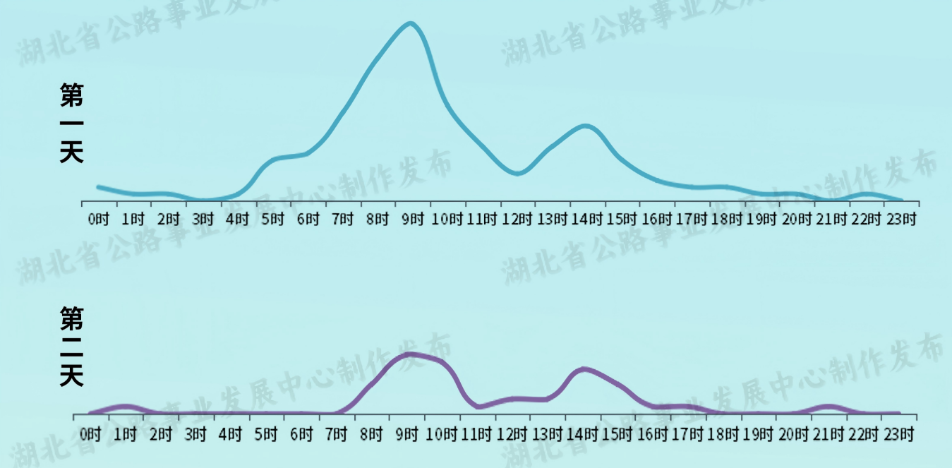 10月1日至2日(假期第1天至第2天),預計該兩日7時至14時路網(wǎng)較為繁忙,其中10月1日8時至11時左右出現(xiàn)假期出程高峰。