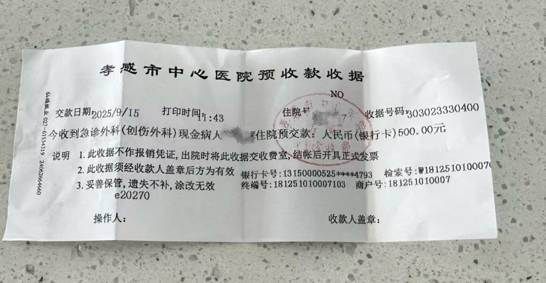 荊楚網(wǎng)(湖北日?qǐng)?bào)網(wǎng))訊( 通訊員 張梓萱)9月15日,孝感市中心醫(yī)院急診外科發(fā)生了感人至深的一幕。一位七旬老人因外傷致肋骨骨折,被緊急送至醫(yī)院。面對(duì)身無(wú)分文且無(wú)法聯(lián)系家人的困境,醫(yī)護(hù)人員挺身而出,用實(shí)際行動(dòng)詮釋了醫(yī)者仁心。