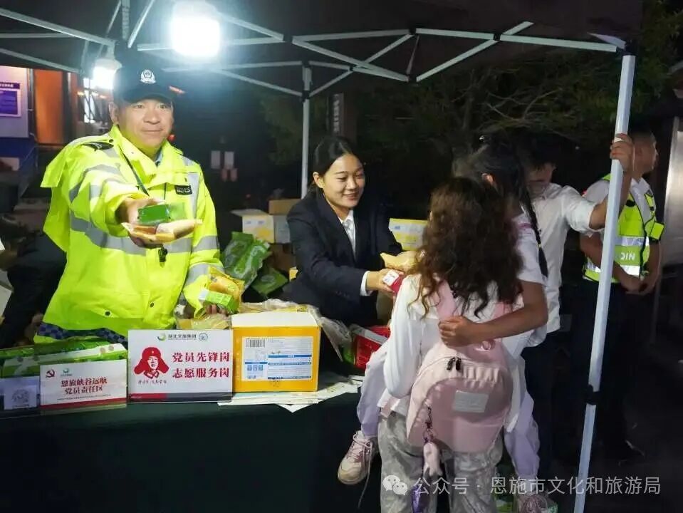 “暖心八條”措施直面游客便利出行,機(jī)關(guān)企事業(yè)單位停車場(chǎng)免費(fèi)對(duì)外開放,被游客譽(yù)為“最實(shí)在的歡迎禮”。此外,全市組織的600余名志愿者,則是這種城市溫度的直接傳遞者,也構(gòu)成了恩施的另一道溫暖風(fēng)景。在高速路口,志愿者小沈正為一位風(fēng)塵仆仆的自駕游客遞上熱水:“我們不僅要解答咨詢,更要讓每一位來(lái)到恩施的游客感受到我們的熱情?!痹诰皡^(qū)入口處,穿著紅馬甲的志愿者耐心引導(dǎo)即將入園的游客,他們的微笑成為恩施最美的風(fēng)景線。