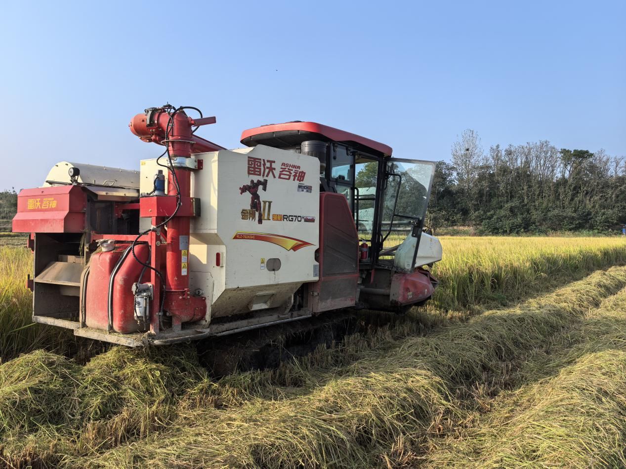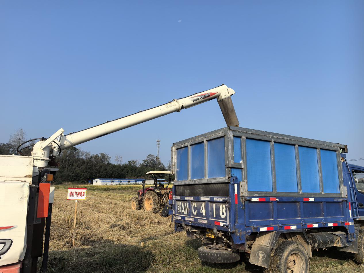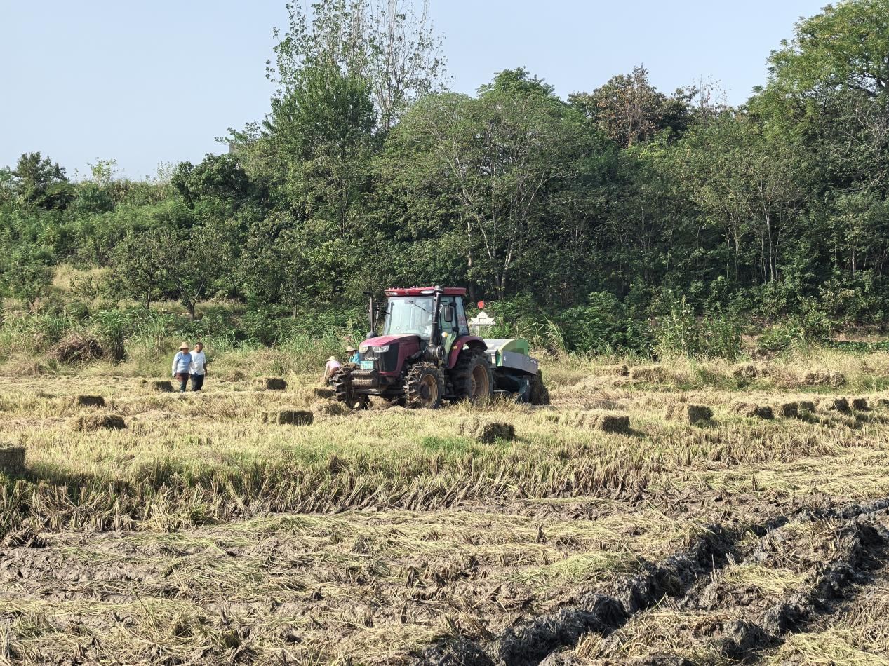 現(xiàn)場觀摩區(qū)里,“田間處理 + 加工轉(zhuǎn)化”的全鏈條場景格外吸睛。在水稻秸稈處理現(xiàn)場,一臺加裝“秸稈粉碎還田裝置”的聯(lián)合收割機正高效作業(yè),稻穗歸倉的同時,還田秸稈被瞬間粉碎后均勻撒落田間,隨后通過旋耕機開溝起壟,將秸稈翻埋還田,利用微生物自然降解發(fā)酵。當?shù)剞r(nóng)技人員介紹:“這種“粉碎還田+ 微生物腐熟”技術,能讓秸稈30天內(nèi)完全降解。”
