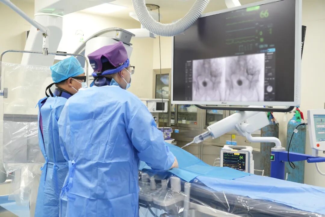 關(guān)鍵時(shí)刻,介入血管科主任黃遷祥提出了一個(gè)創(chuàng)新性的解決方案——實(shí)施前列腺動(dòng)脈栓塞術(shù)(PAE)。黃遷祥介紹,該技術(shù)無(wú)需開(kāi)刀,僅通過(guò)穿刺股動(dòng)脈的微小創(chuàng)口即可完成手術(shù),具有創(chuàng)傷小、麻醉風(fēng)險(xiǎn)低、恢復(fù)快的顯著優(yōu)勢(shì)。更重要的是,能有效保護(hù)功能,極大降低了傳統(tǒng)手術(shù)可能引發(fā)的尿失禁、勃起功能障礙等風(fēng)險(xiǎn)。在與患者及家屬進(jìn)行詳細(xì)溝通,充分告知手術(shù)原理和預(yù)期效果后,該方案得到了一致認(rèn)可。