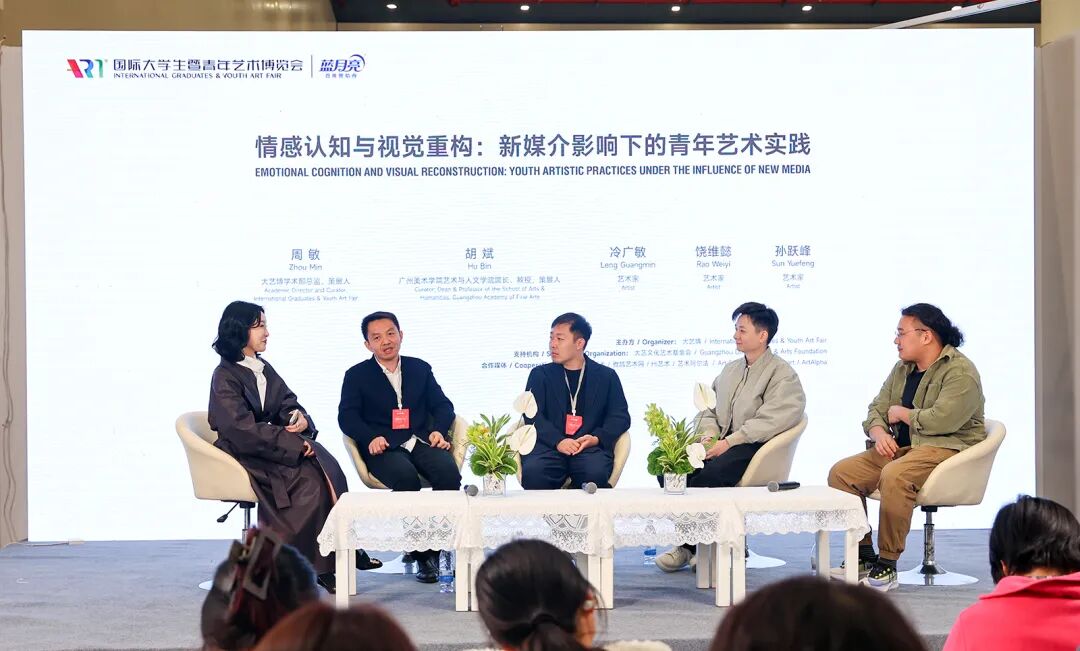 備受矚目的重頭戲是由四川美術(shù)學(xué)院教授、博士研究生導(dǎo)師、策展人何桂彥擔(dān)綱策劃的兩場(chǎng)“學(xué)術(shù)論壇”,分別于開(kāi)幕日上午與下午在大藝博論壇區(qū)開(kāi)講,官方直播間同步開(kāi)播。首場(chǎng)論壇「情感認(rèn)知與視覺(jué)重構(gòu):新媒介影響下的青年藝術(shù)實(shí)踐」,聚焦于新媒介技術(shù)時(shí)代催生的全新的美學(xué)范式如何影響青年藝術(shù)家的創(chuàng)作。特邀廣州美術(shù)學(xué)院藝術(shù)與人文學(xué)院院長(zhǎng)、教授、策展人胡斌,大藝博往屆參展藝術(shù)家冷廣敏、饒維懿,2025大藝博FREE計(jì)劃藝術(shù)家個(gè)展參展藝術(shù)家孫躍峰作為嘉賓,由大藝博學(xué)術(shù)部總監(jiān)、策展人周敏主持。第二場(chǎng)論壇「價(jià)值發(fā)現(xiàn)與未來(lái)敘事:當(dāng)代收藏話語(yǔ)中的青年藝術(shù)」從“語(yǔ)言-機(jī)制-系統(tǒng)-未來(lái)”四個(gè)維度,探討青年藝術(shù)的價(jià)值發(fā)現(xiàn)與藝術(shù)生態(tài)的營(yíng)建。特邀收藏家、東通菜園園丁、藝術(shù)愛(ài)好者焦景佳,收藏家、剩余空間創(chuàng)始人眭群,湖北美術(shù)學(xué)院繪畫學(xué)院院長(zhǎng)、教授徐文濤,Hi藝術(shù)出品人、玉蘭堂畫廊創(chuàng)始人伍勁作為論壇嘉賓,由何桂彥擔(dān)任主持。