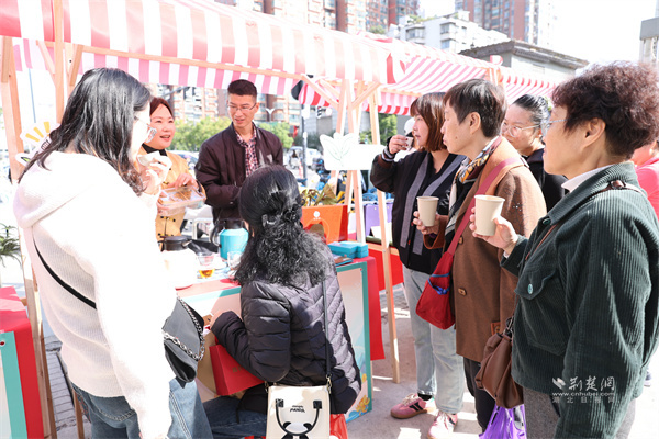 活動設(shè)置互動體驗與文藝表演兩大區(qū)域,現(xiàn)場熱鬧非凡。互動體驗區(qū)的“DIY調(diào)飲攤”前,居民們親手調(diào)配創(chuàng)意茶飲,在沖泡間感受茶飲的多樣魅力;氛圍打卡點深受年輕居民青睞,大家紛紛拍照留念,并通過社交媒體分享活動盛況,實現(xiàn)線下體驗與線上傳播的有效聯(lián)動。