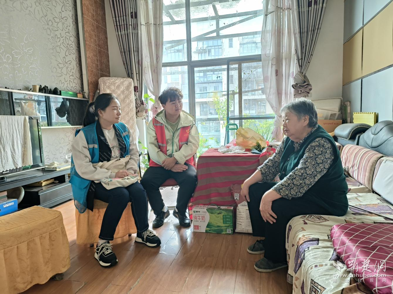 活動(dòng)中,社區(qū)工作人員走進(jìn)老年人家中,傾聽心聲、傳遞溫暖。在88歲胡婆婆家中,工作人員耐心細(xì)致地為其辦理了高齡認(rèn)證,并與老人圍坐在一起拉家常,細(xì)心詢問他們的身體狀況和生活情況,送上慰問品與祝福,以實(shí)際行動(dòng)詮釋社區(qū)的溫暖與牽掛。