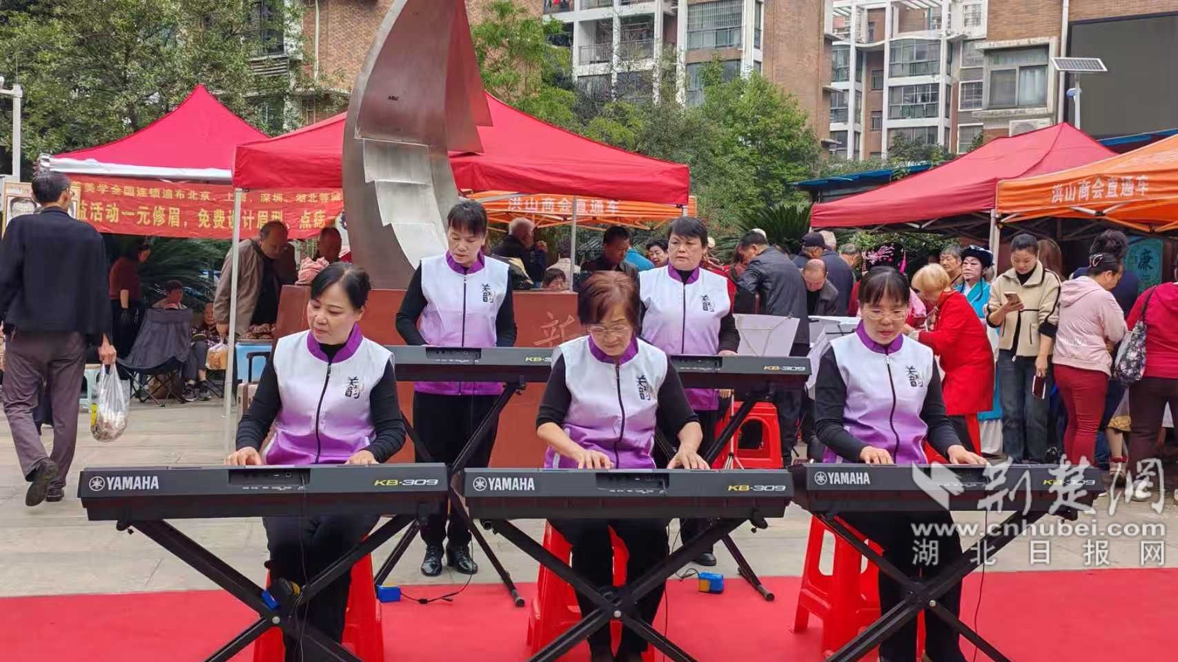隨后,文藝匯演精彩啟幕。社區(qū)黨員、文藝愛好者與居家養(yǎng)老服務中心志愿者聯袂獻藝,帶來了一場精彩紛呈的視聽盛宴:昂揚的大合唱唱出了老人們對黨的感恩與對生活的熱愛;節(jié)奏明快的舞蹈展現出蓬勃向上的精神風貌;電子琴齊奏音色悠揚、婉轉悅耳;經典黃梅戲選段韻味悠長,勾起老一輩的青春回憶;輕快靈動的口琴演奏贏得臺下陣陣喝彩。表演者全心投入,老人們看得津津有味,不時跟著哼唱、拍手叫好,歡聲笑語交織成最動人的節(jié)日樂章。