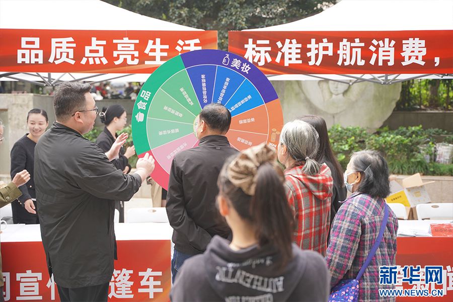 在答題區(qū)的“消費標準大轉(zhuǎn)盤”上,列出了食品、美妝、建材、家電等板塊延伸出的12個題目,聚焦衣食住行各類標準。市民們通過轉(zhuǎn)盤隨機選擇問題,標準化領(lǐng)域?qū)<液拖M者權(quán)益保護專家在一旁及時答疑。