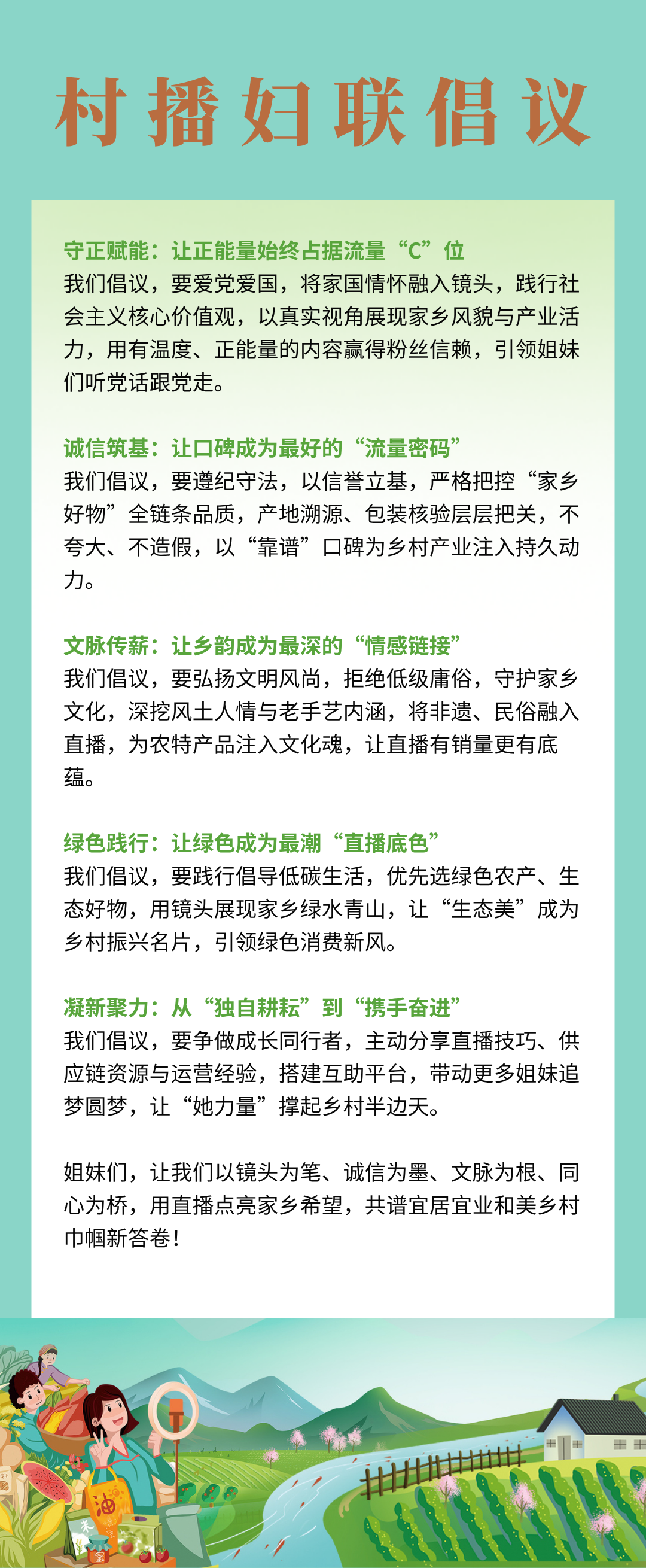 五位村播婦聯(lián)代表向女主播們發(fā)出倡議