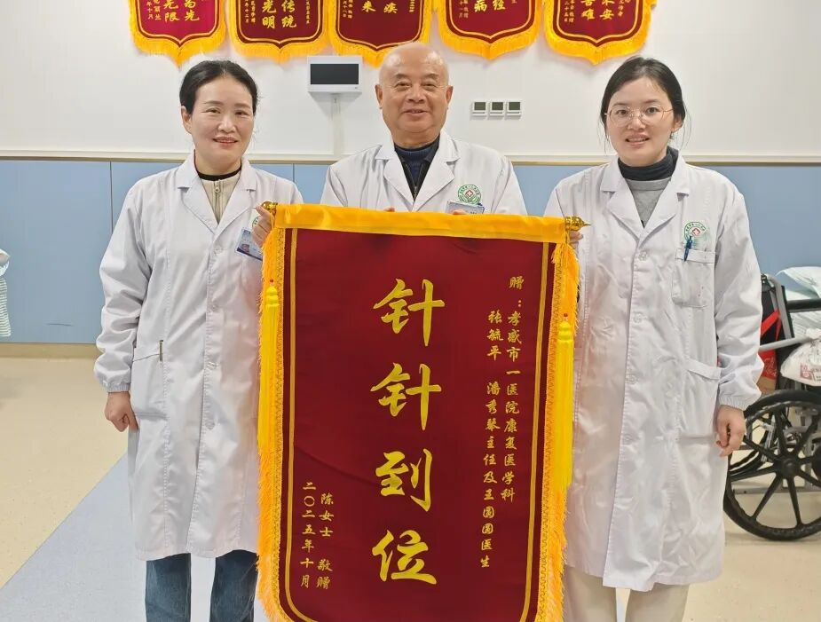荊楚網(wǎng)(湖北日?qǐng)?bào)網(wǎng))訊(通訊員 潘秀琴)10月28日,孝感市第一人民醫(yī)院康復(fù)醫(yī)學(xué)科的診室里暖意融融,患者陳女士將兩面分別繡有“針針到位”“仁心仁德好醫(yī)生 全心全意為患者”的鮮紅錦旗鄭重送到醫(yī)護(hù)人員手中,感謝該科團(tuán)隊(duì)用精湛醫(yī)術(shù)與暖心照護(hù)助其重返健康生活。