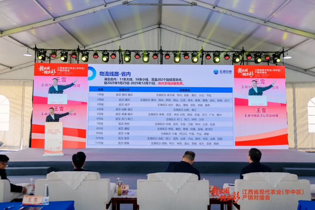 對接會(huì)當(dāng)天,玉湖冷鏈武漢公司負(fù)責(zé)人介紹了依托黃陂基地構(gòu)建的綜合服務(wù)體系及專項(xiàng)物流優(yōu)惠政策。該體系以“降本增效”為核心,為贛鄂兩地食材流通提供從產(chǎn)地倉儲(chǔ)、干線運(yùn)輸?shù)浇K端配送的一體化解決方案,助力江西企業(yè)實(shí)現(xiàn)“產(chǎn)地直供+華中直銷”的暢通循環(huán)。