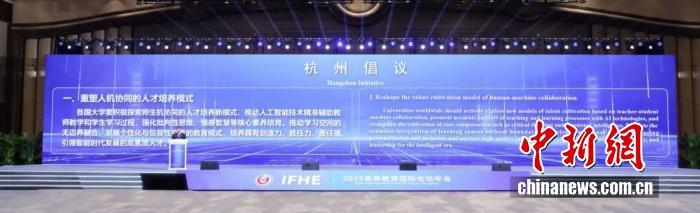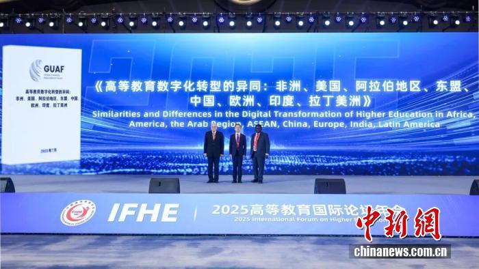 11月9日杭州2025高等教育國際論壇開幕式上,中國高等教育學(xué)會與歐洲大學(xué)協(xié)會、美國教育委員會等8大國際教育組織聯(lián)合撰寫的《高等教育數(shù)字化轉(zhuǎn)型的異同》研究報告進行了展示。(主辦方供圖)