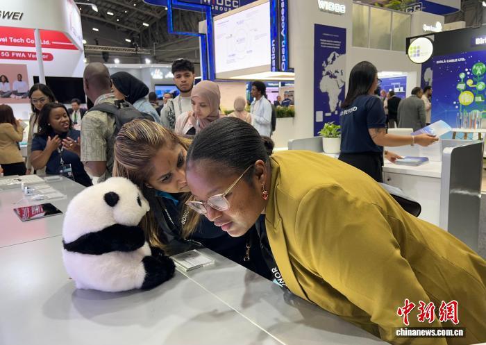 當(dāng)?shù)貢r間11月11日,第28屆非洲科技節(jié)在南非開普敦開幕。圖為與會嘉賓在中國企業(yè)展區(qū)了解接入人工智能系統(tǒng)的毛絨玩具?!≈行律缬浾?孫翔 攝