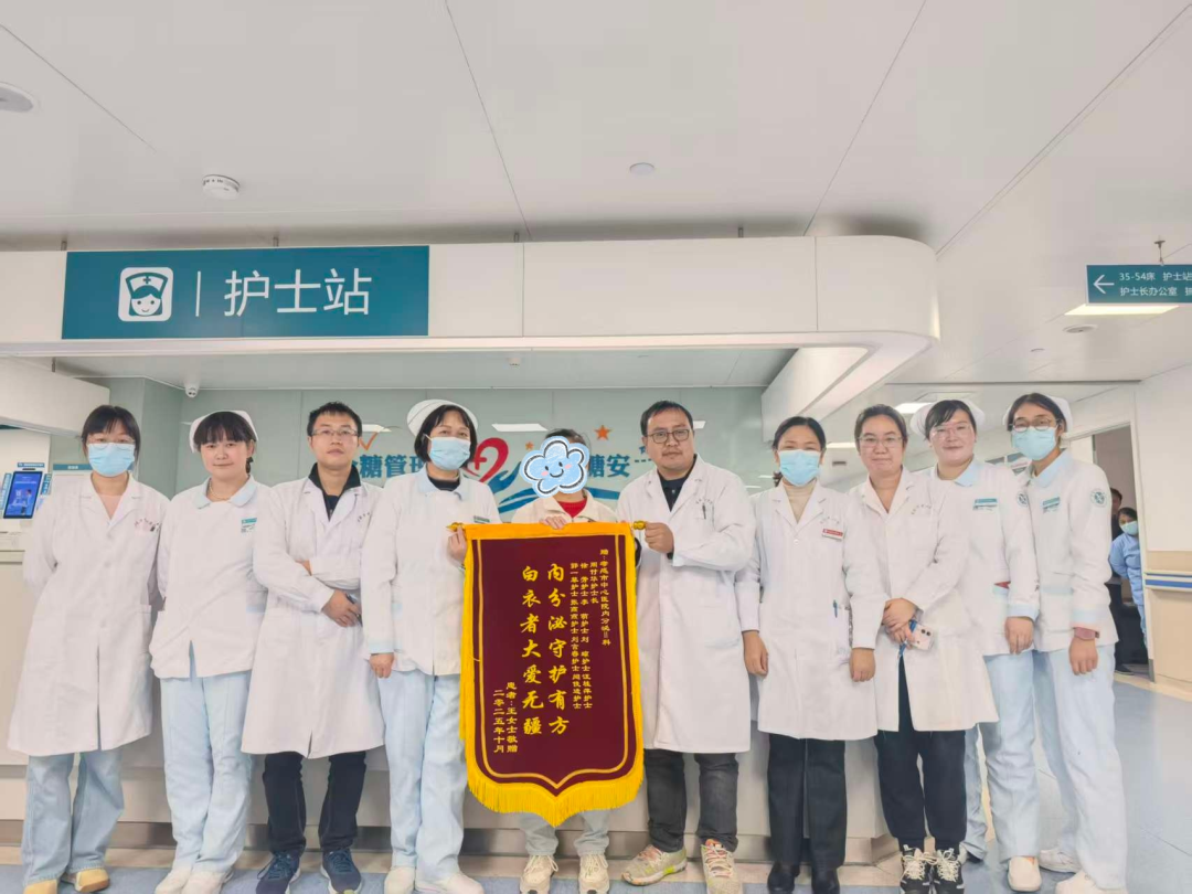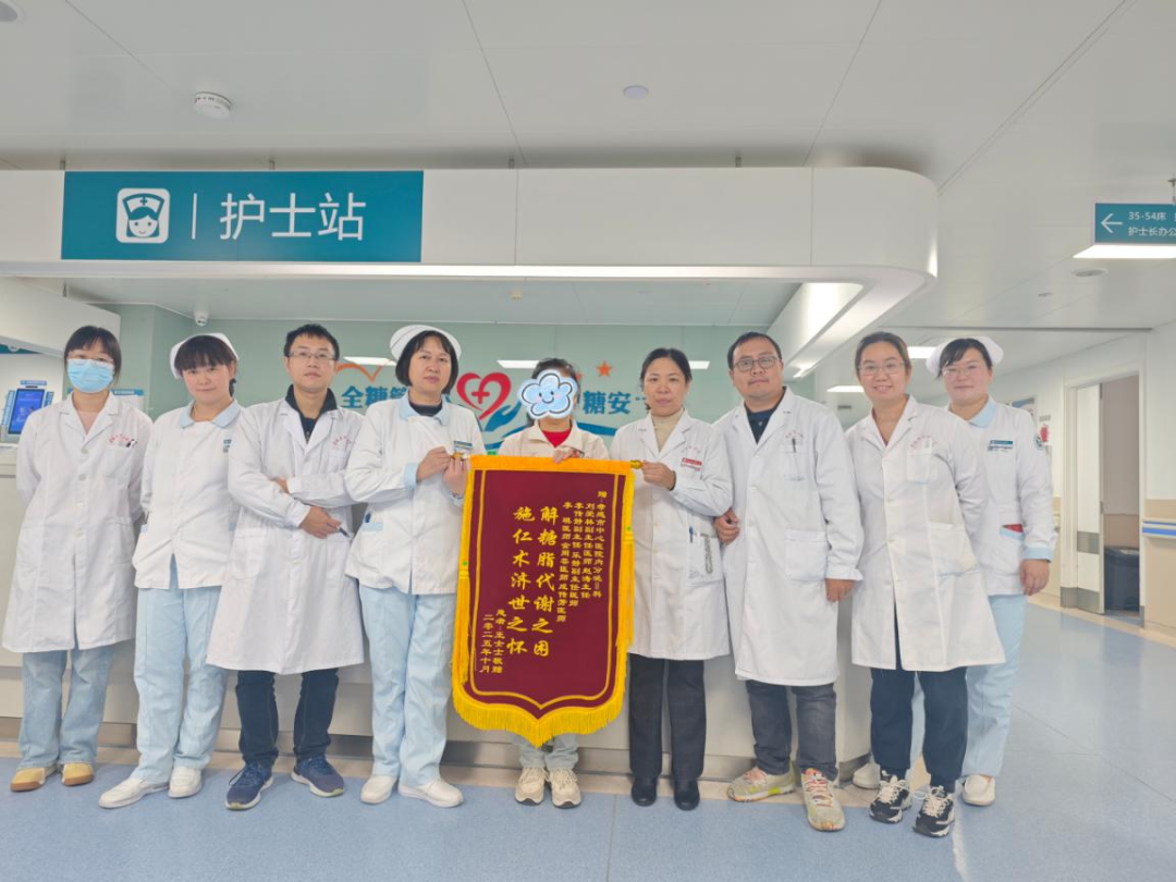 荊楚網(wǎng)(湖北日?qǐng)?bào)網(wǎng))訊(通訊員 周付華)“內(nèi)分泌守護(hù)有方,白衣者大愛(ài)無(wú)疆”“解糖脂代謝之困,施仁術(shù)濟(jì)世之懷”。近日,孝感市中心醫(yī)院內(nèi)分泌科II病區(qū)收到兩面紅底金字的錦旗。剛康復(fù)出院的王阿姨(化名)專(zhuān)程送來(lái)這份感謝,錦旗上的字跡,既是患者的真誠(chéng)贊譽(yù),也記錄了一場(chǎng)救治糖尿病重癥并發(fā)癥患者的攻堅(jiān)過(guò)程。