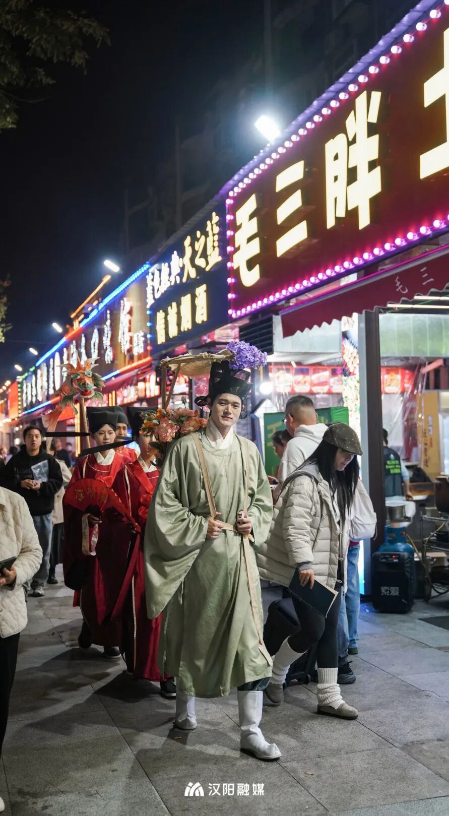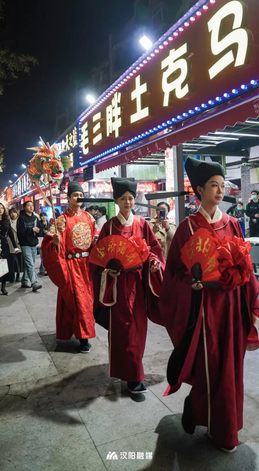 今晚,頭戴烏紗帽、身著飛魚服的“狀元郎”化身“首席引烤官”,帶領(lǐng)舉人秀才巡街互動,一句“客官骨骼清奇,必是吃貨轉(zhuǎn)世”逗樂全場。更勁爆的是,“知音漢陽”視頻號直播間狂撒福利:無敵燒烤、毛大佑、老油條等10家名店“限時(shí)霸王餐”線上直送,解鎖免費(fèi)擼串的快樂!