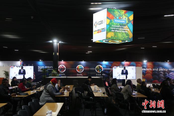 當(dāng)?shù)貢r(shí)間11月17日,南非在約翰內(nèi)斯堡展覽中心(NASREC)召開媒體簡(jiǎn)報(bào)會(huì),介紹二十國(guó)集團(tuán)(G20)領(lǐng)導(dǎo)人峰會(huì)籌備進(jìn)展?!≈行律缬浾?孫翔 攝