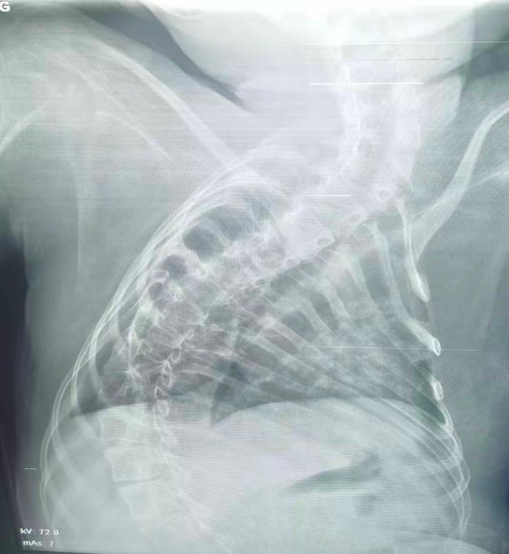 該患兒因患脊髓性肌萎縮癥長期臥床,呼吸肌已嚴(yán)重?zé)o力,自主呼吸微弱且?guī)缀鯁适Э人耘盘的芰?,此次并發(fā)支氣管肺炎后,肺部感染迅速加重,生命已然懸于一線。更棘手的是,嚴(yán)重的脊柱側(cè)彎使患兒胸廓畸形、氣道解剖結(jié)構(gòu)明顯移位,常規(guī)纖支鏡進(jìn)鏡路徑完全失效,扭曲狹窄的氣道如同縱橫交錯(cuò)的“迷宮”,每一步操作都必須精準(zhǔn)到毫米級(jí)別。