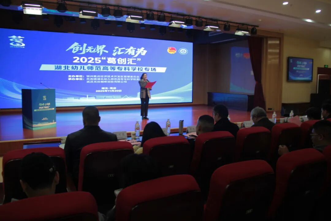 11月20日,由鄂州葛店經(jīng)濟(jì)技術(shù)開發(fā)區(qū)管理委員會主辦,共青團(tuán)湖北幼兒師范高等??茖W(xué)校委員會、武漢光谷咖啡創(chuàng)投有限公司聯(lián)合承辦的2025“葛創(chuàng)匯”湖北幼兒師范高等??茖W(xué)校專場路演活動在學(xué)校報告廳成功舉辦。