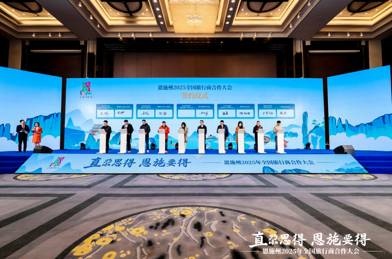 本次會(huì)上,現(xiàn)場(chǎng)達(dá)成戰(zhàn)略合作項(xiàng)目百余個(gè),覆蓋景區(qū)聯(lián)票、旅游專線、酒店住宿、交通接駁等多個(gè)領(lǐng)域。來(lái)自內(nèi)蒙古、上海、青海等地的旅行商與恩施地接旅行社簽署了深度合作協(xié)議,預(yù)計(jì)2026年將為恩施輸送客源超百萬(wàn)人次。與此同時(shí),3000余塊恩施旅游電梯廣告覆蓋武漢三鎮(zhèn),“直尕思得 恩施要得”形象宣傳亮相江城夜景燈光秀。