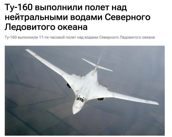 聲明稱, “圖-160遠(yuǎn)程戰(zhàn)略轟炸機(jī)在北冰洋中立水域上空執(zhí)行了一次例行飛行。飛行時間超過11小時?!?/p>