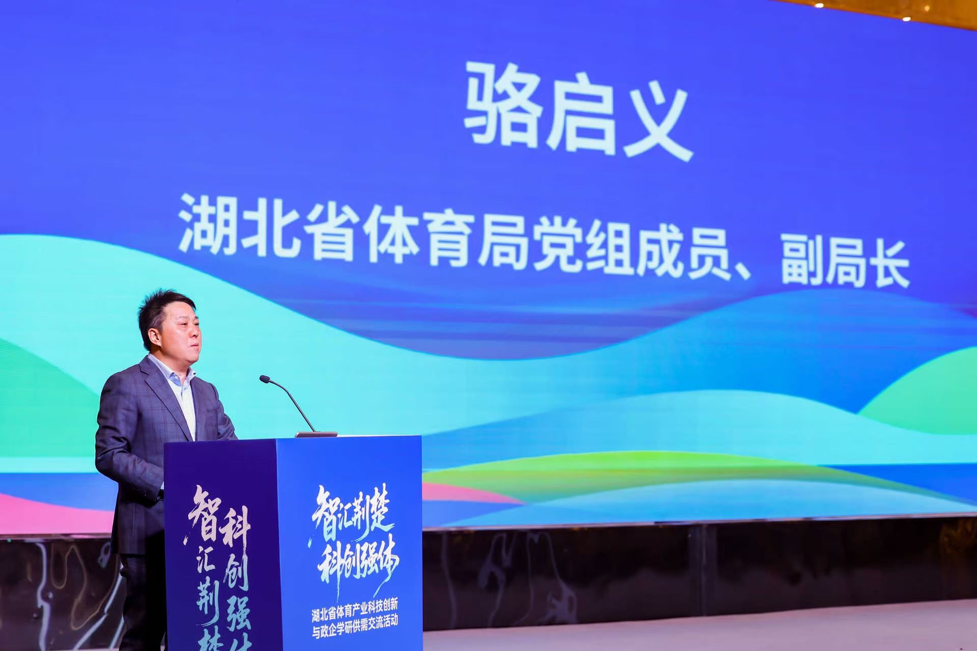 駱啟義在致辭中指出,本次活動(dòng)的舉辦,是貫徹落實(shí)《國(guó)務(wù)院辦公廳關(guān)于釋放體育消費(fèi)潛力 進(jìn)一步推進(jìn)體育產(chǎn)業(yè)高質(zhì)量發(fā)展的意見(jiàn)》文件要求,推動(dòng)湖北體育產(chǎn)業(yè)從“規(guī)模擴(kuò)張”向“提質(zhì)增效”的關(guān)鍵一步。發(fā)展體育產(chǎn)業(yè),科技創(chuàng)新是核心引擎,深化協(xié)同是必由之路。省體育局將與省科技廳等部門一道,以本次活動(dòng)為起點(diǎn),推動(dòng)湖北體育產(chǎn)業(yè)從“制造”向“智造”、從“單一”向“多元”加速轉(zhuǎn)型,成為拉動(dòng)消費(fèi)、穩(wěn)定增長(zhǎng)的重要力量。