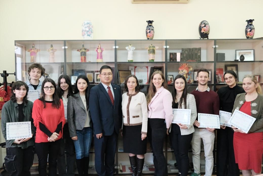 人民網(wǎng)華沙11月25日電 (記者禹麗敏)當(dāng)?shù)貢r(shí)間11月24日下午,首屆中羅文學(xué)作品翻譯大賽頒獎(jiǎng)儀式在布加勒斯特成功舉辦。該比賽由布加勒斯特大學(xué)孔子學(xué)院主辦、中國(guó)駐羅馬尼亞大使館支持。中國(guó)駐羅馬尼亞使館教育事務(wù)專員周國(guó)寧,布加勒斯特大學(xué)孔子學(xué)院羅方院長(zhǎng)白羅米、中方院長(zhǎng)蘇宇以及布加勒斯特大學(xué)外國(guó)語言和文學(xué)學(xué)院教師包心茹、安德出席。獲獎(jiǎng)選手代表、孔院師生和布大中文系學(xué)生40余人參加活動(dòng)。蘇宇主持頒獎(jiǎng)儀式。
