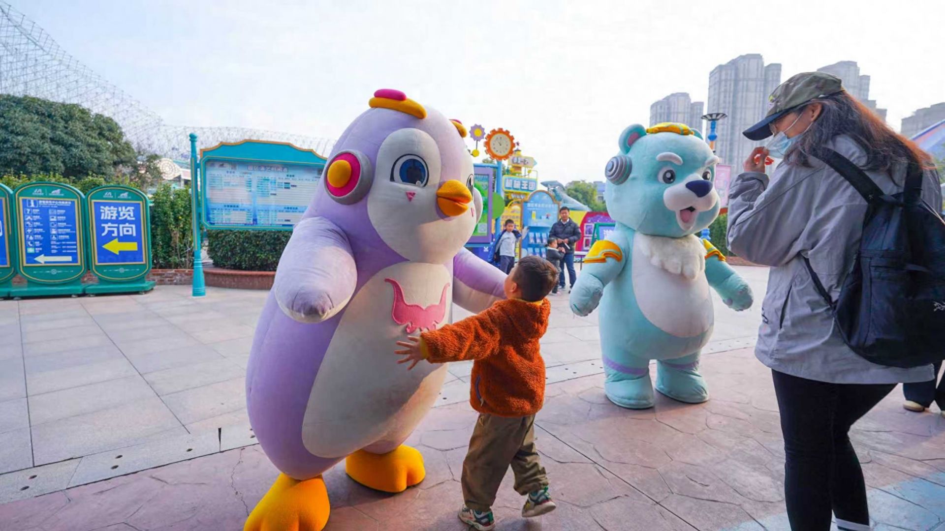 活動開始,極地家族IP人偶在園區(qū)主入口迎接游客,用“愛的抱抱”給游客傳遞第一份溫暖。不少家庭與年輕游客紛紛駐足互動,在擁抱中拉開感恩節(jié)游園的序幕,也為漸寒的江城冬日添上一抹溫馨色彩。