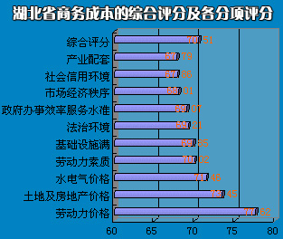 投資者對影響我省商務成本的十大因素的評價都較均衡,各項評分介于67.8-77之間,綜合評分70.51,正好位于基本滿意(60)與滿意(80)區(qū)間的中位。較去年同類調(diào)查數(shù)據(jù)相比,提高3.5分。 ……………………………………………………………………