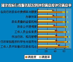 注1:滿意度參考分值:很滿意100分,滿意80分,基本滿意60分,不滿意30分,很不滿意0分。 注2:滿意率:所有調(diào)查者中對某一調(diào)查項目表示很滿意和滿意的比率。 注3:認可率:所有調(diào)查者中對某一調(diào)查項目表示基本滿意、滿意和很滿意的比率。 ……………………………………………………………………