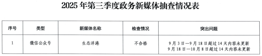 荊楚網(湖北日報網)訊(記者 呂鑒蕾)記者24日獲悉,日前,黃石市政務服務管理局組織開展了2025年第三季度全市政府網站與政務新媒體檢查。其中,黃石市經信局官網和“生態(tài)洋港”公眾號因日常維護管理不到位被點名。
