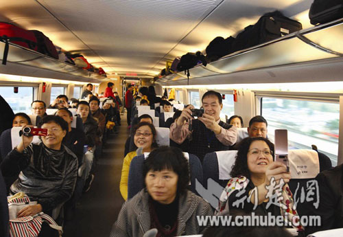 荊楚網(wǎng)消息 (楚天金報記者譚新杰 通訊員郭金富、劉強)12月26日上午9時,三列嶄新的時速350公里“和諧號”高速列車從武漢站、長沙站和廣州北站同時首發(fā),標(biāo)志著目前世界上運營速度最快、一次性建成里程最長的高鐵新干線——武廣客專正式投入運營。“陸地飛行下廣州,千里南國一日還”的時代已經(jīng)到來。