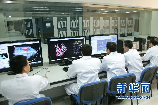 這是科研人員在對“天河一號”超級計算機進行系統(tǒng)性能測試(資料照片)。 新華社發(fā) (何書遠 攝)